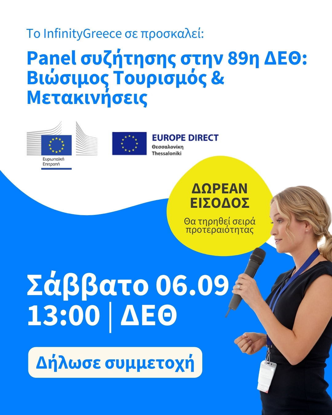 Το #InfinityGreece σε προσκαλεί να συμμετέχεις ενεργά στην ομιλία της Ευρωπαϊκής Επιτροπής για τον Βιώσιμο Τουρισμό & τις Μετακινήσεις.