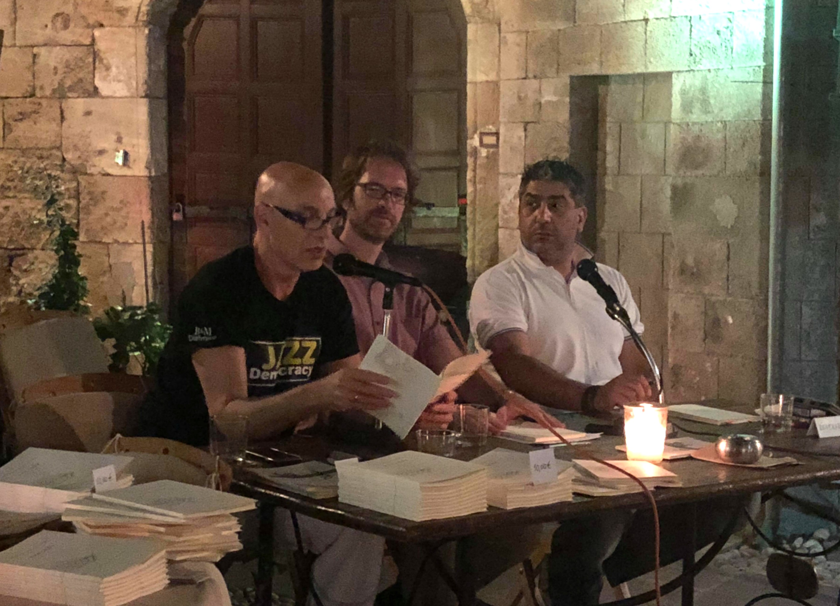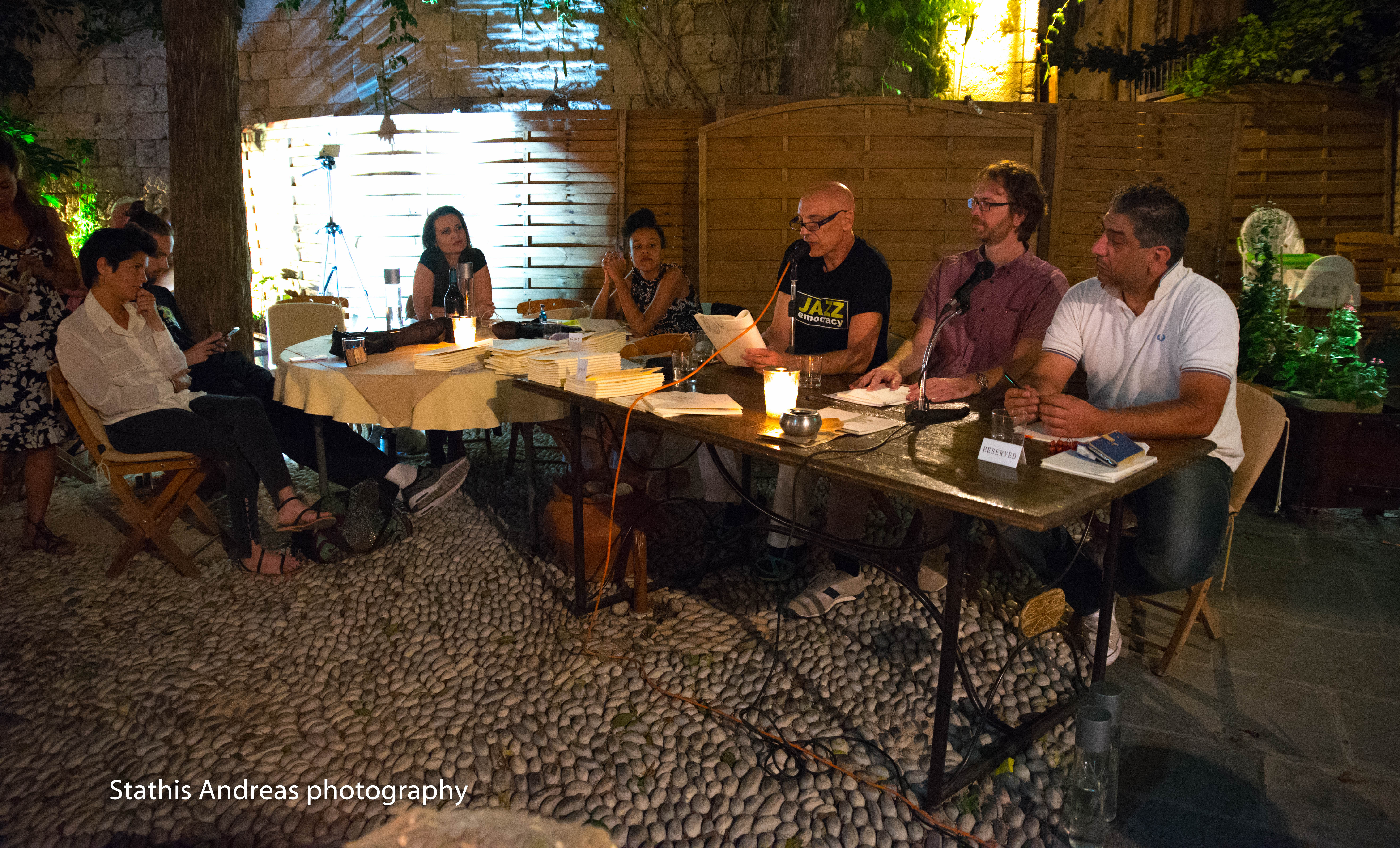 Presentation of the collection of poems “Anacoda” (Gavriilidis, 2018) by the famous jazz saxophonist and university teacher Dimitris Vasilakis. Speakers: Argyris Koskoros, IWTCR librarian and philologist and Vasilis Mantikos, civil engineer-poet. The following musicians played live: Dimitris Vasilakis-saxophone, Nestoras Vasilakis-saxophone, Aris Solomon-drums, Sassa Papaplambrou-piano, vocals, Nastasia Beikof-vocals and Monique Kabasele-vocals. During the event the aforementioned female artists presented their ideas and experiences about the principles of the jazz democracy and the role of women performers in jazz. The presentation took place within the context of the “Jazz Democracy” two-day festival/forum under the direction of Dimitris Vasilakis and followed on from the event that was held at the United Nations headquarters in New York last April. Monday 10 September 2018, at 20.00, Auvergne Café-Old Town